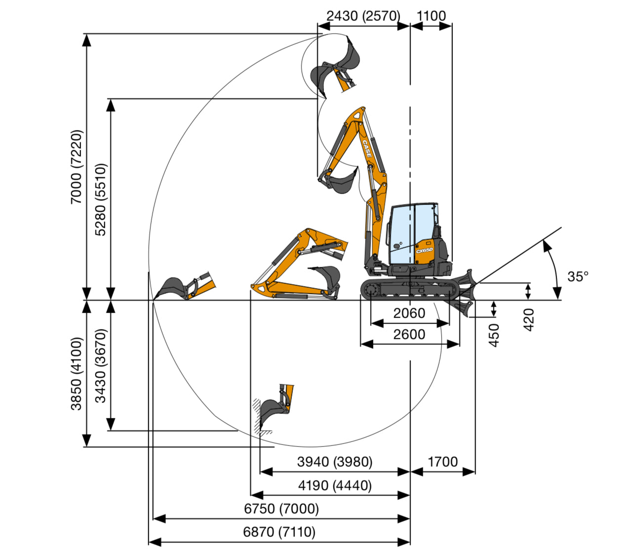 CASE CX60D (braccio monolitico)