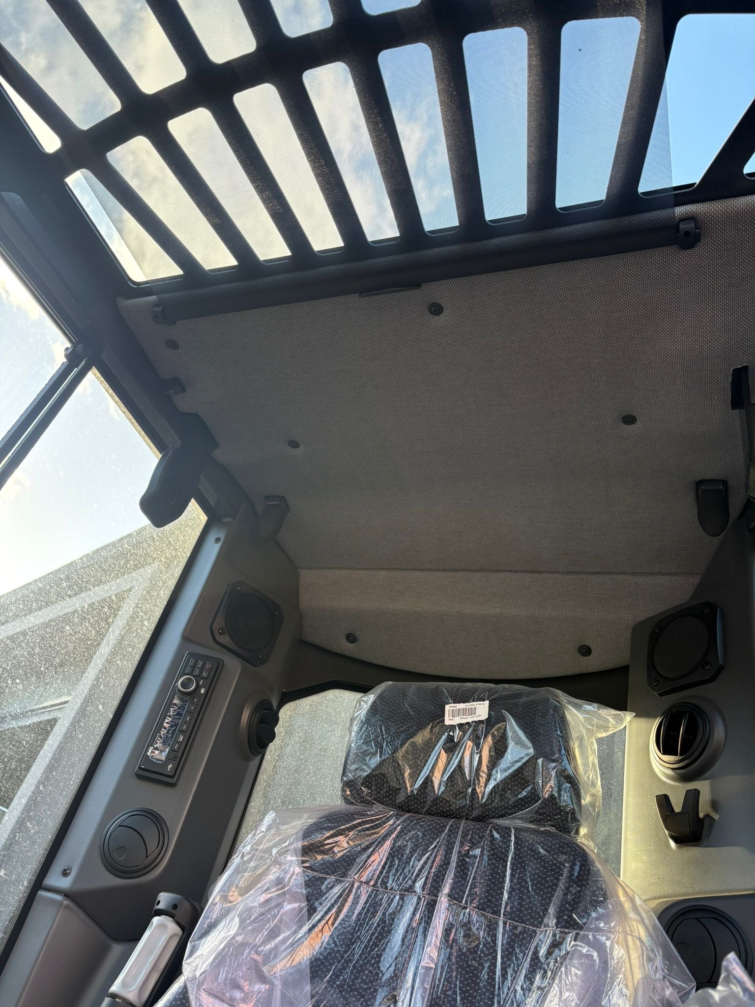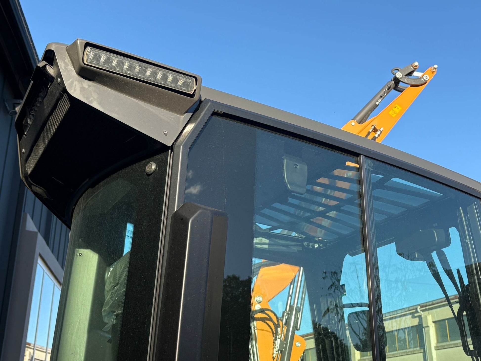 Macchina equipaggiata con cabina ribaltabile ROPS/TOPS-FOPS Livello 1, climatizzatore automatico, radio DAB con Bluetooth e USB, sedile Premium con sospensione meccanica, telecamera posteriore, luci LED, lama standard e cingoli in gomma.